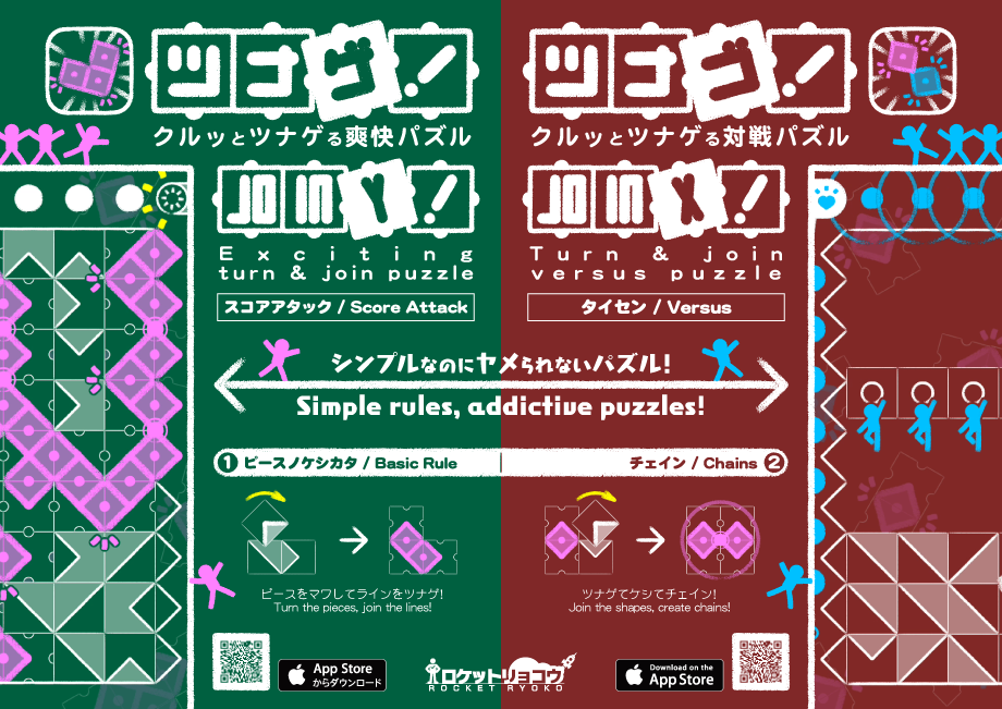 それより、なぜか最近、「ツナゴ!」よりも前作「ツナゲ!」のダウンロードが多いのが気になってて…対戦版、ツマんなかったんでしょうか…それとも、スコアアタックテイストの方がこのゲーム性には合ってたって事なんでしょうかね…う~む…となると…パズルバージョンは…